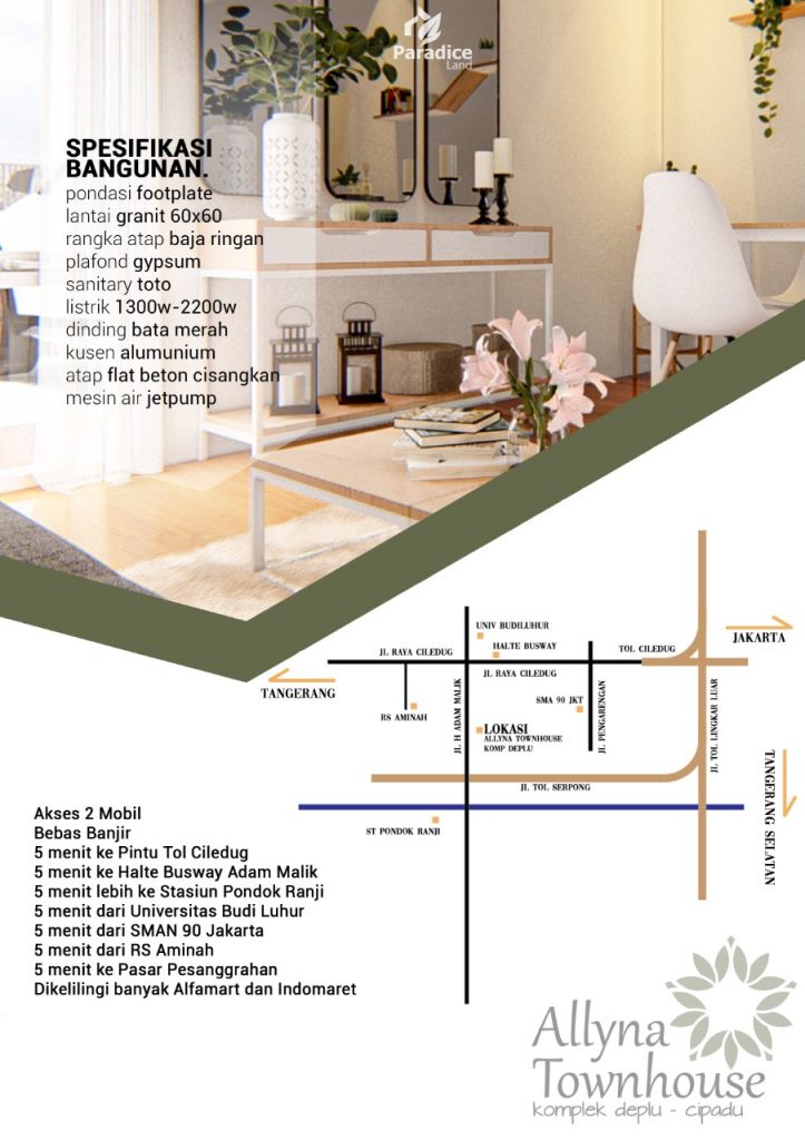 Setelah sukses dengan proyek-proyek kami di daerah depok, saat ini kami menghadirkan hunian modern dengan harga yang terjangkau di daerah kota Tangerang.